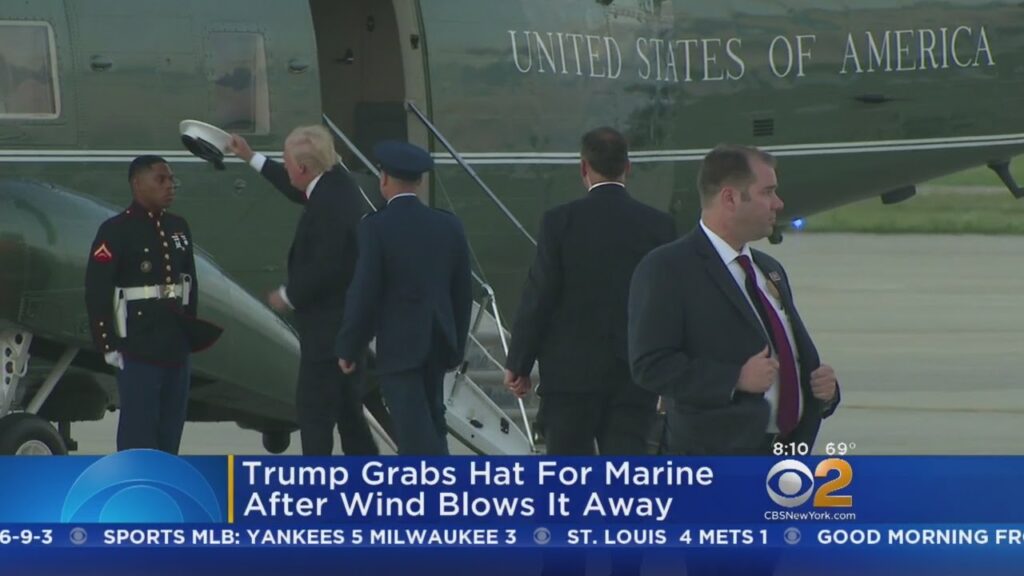 President Trump Grabs Marine’s Hat After Wind Blows It away